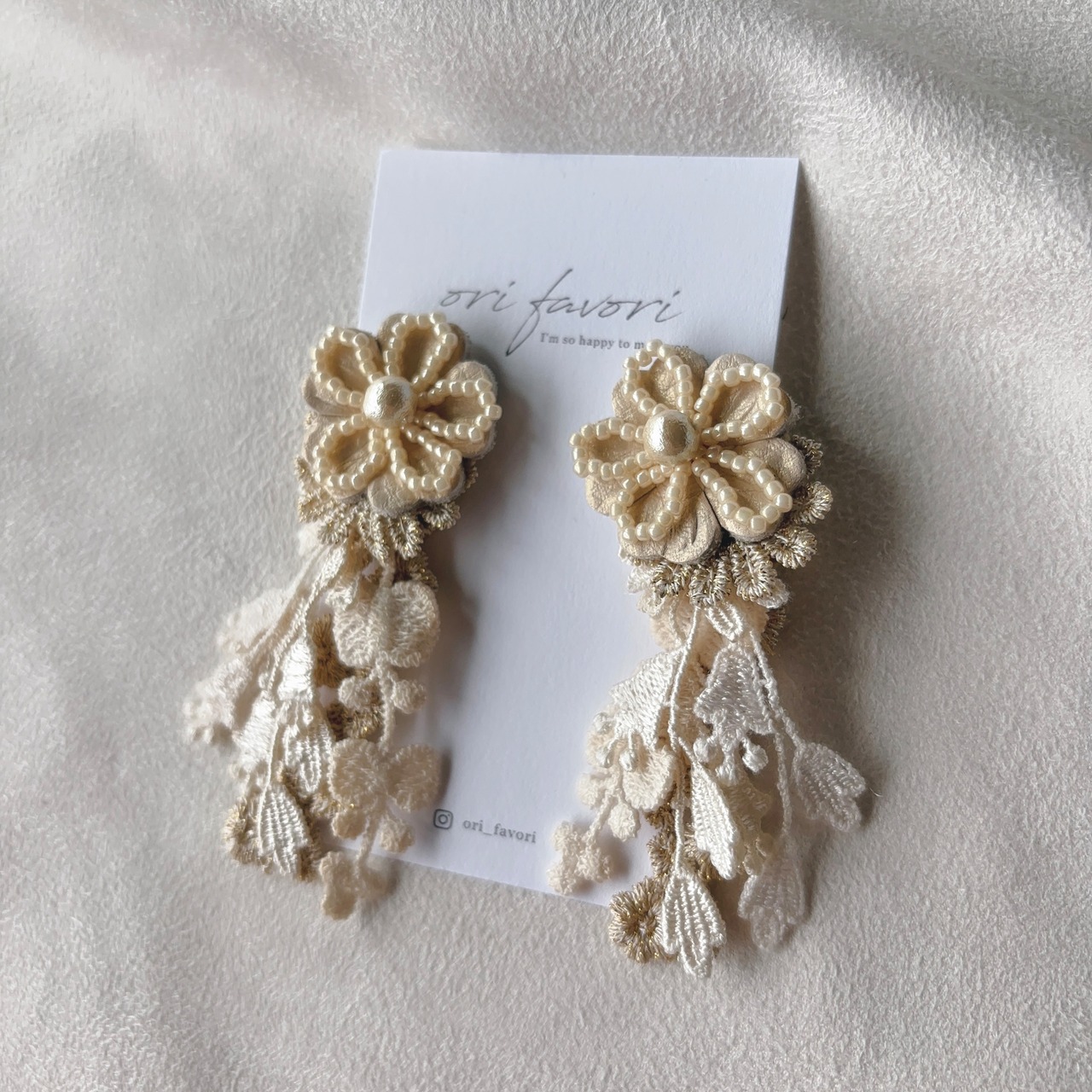 アイボリーのレザーのお花を合わせてみました*